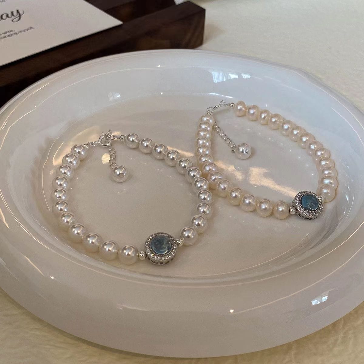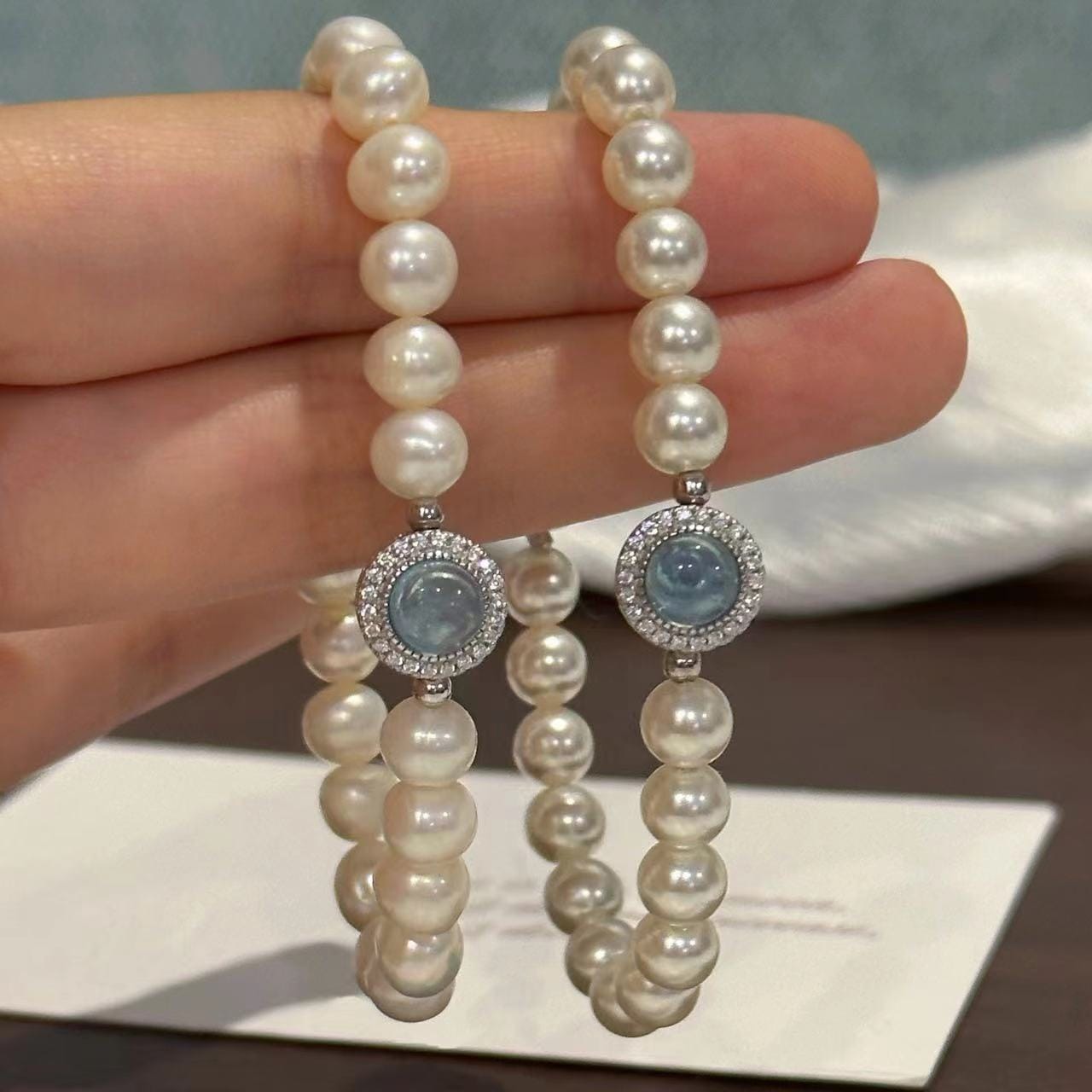 7 reviews for Aquamarine and Faux Pearl Bracelet