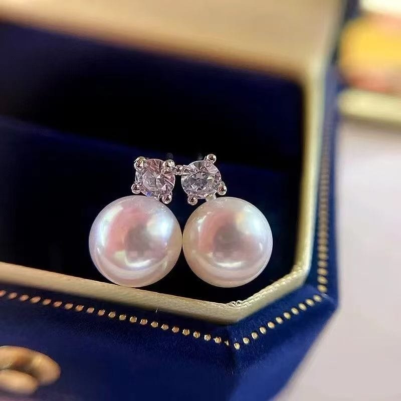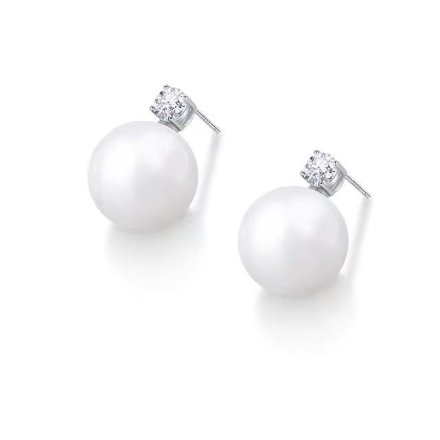 Fashionable Diamond-Accented Pearl Stud Earrings