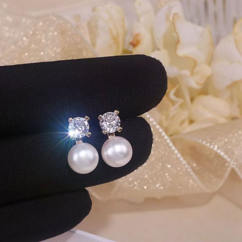 6 reviews for Fashionable Diamond-Accented Pearl Stud Earrings
