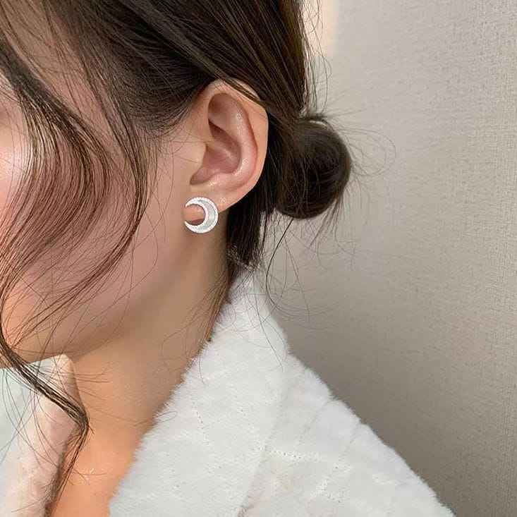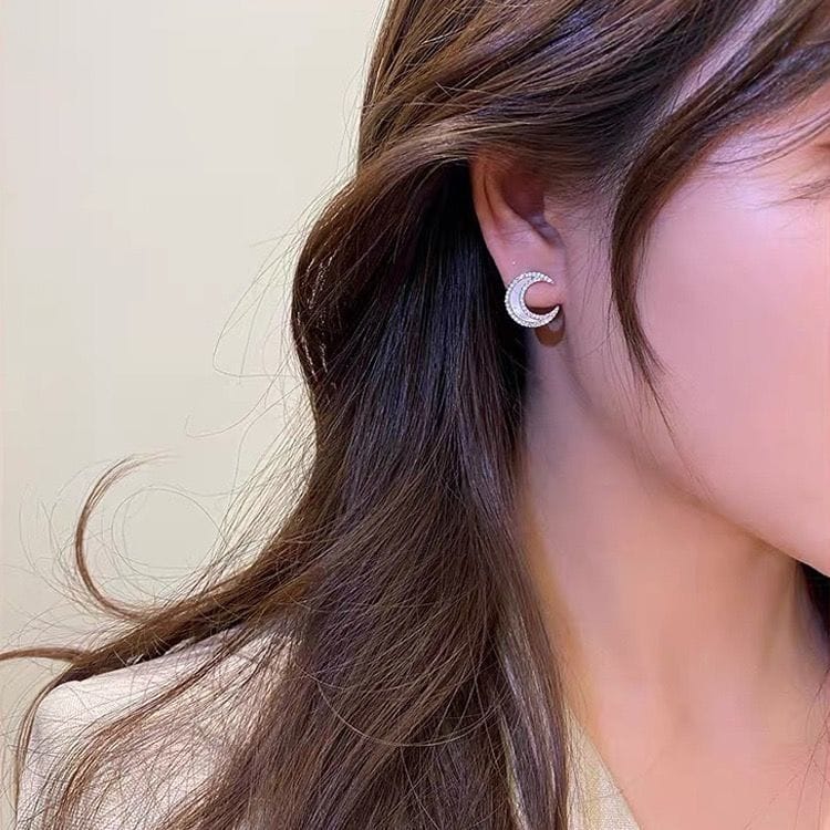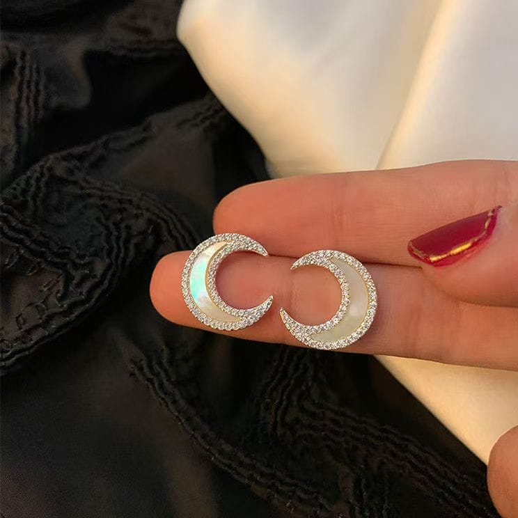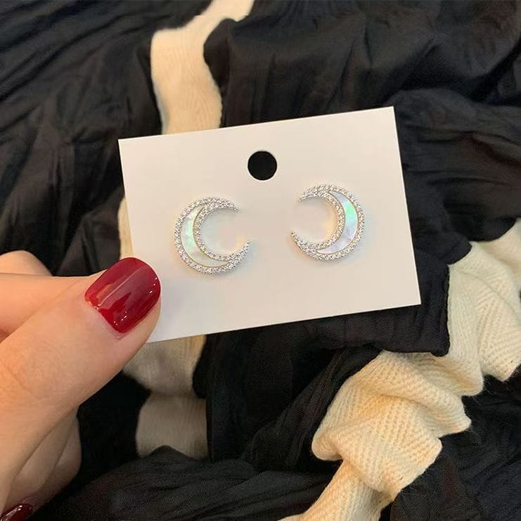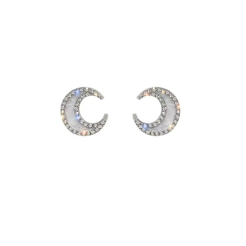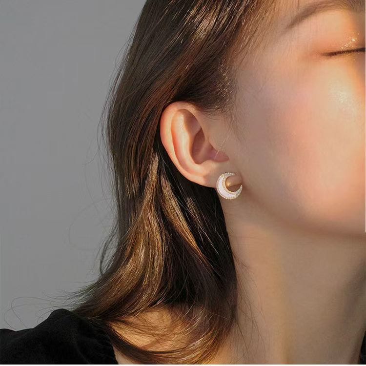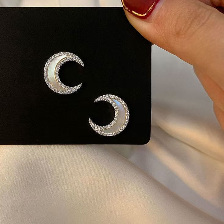 Sterling silver moon set with diamond shell stud earrings